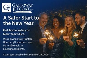 Lafayette, Louisiana - Galloway Jefcoat Injury Attorneys is proud to announce its New Year’s Safe Ride initiative, offering 100 free Uber or Lyft vouchers to